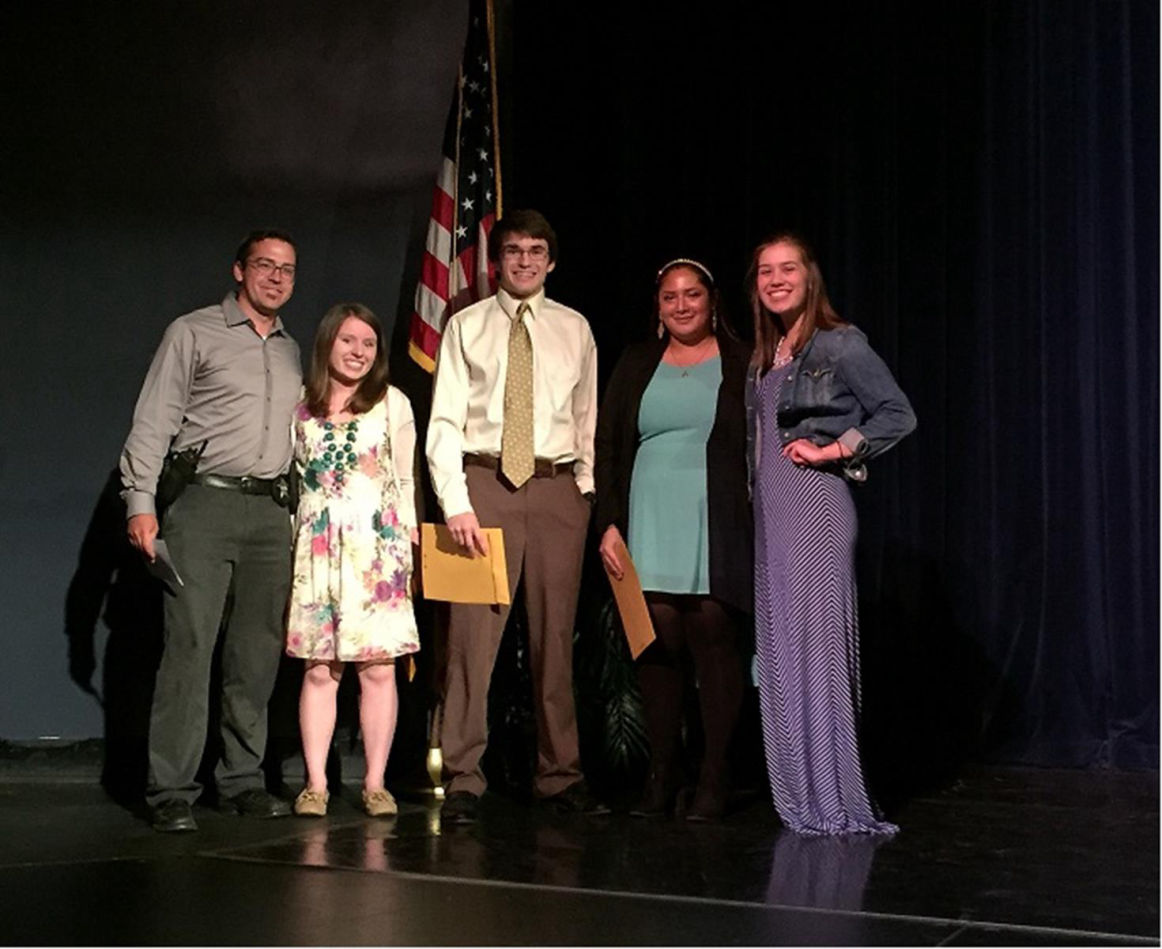 Det. Garrett Oberkircher with scholarship recipients: Kathleen Todd, Ehren Hager, Kristy Garcia, and Jacqueline Breimeier